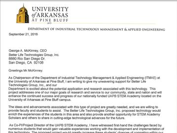 Better Life Technologies Group's Glucose Detection IP was endorsed by The University of Arkansas Pine Bluff